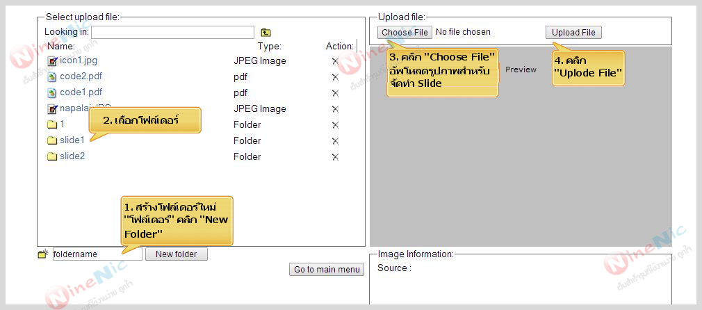 อัพโหลด รูปภาพสำหรับ Slide ทั้งหมดลงใน Folder ที่สร้างไว้ในขั้นตอนที่1 (โดยให้ความสูงของภาพมีขนาดเท่ากันทุกภาพ-เพื่อความสวยงาม)