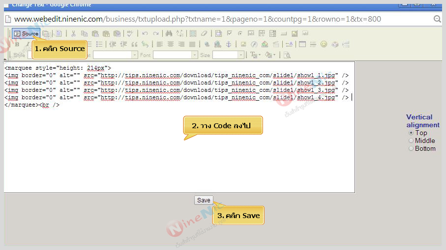วิธีการทำภาพสไลด์ด้วย Marquee  ใน Webedit ของระบบเว็บไซต์สำเร็จรูป-NineNIC